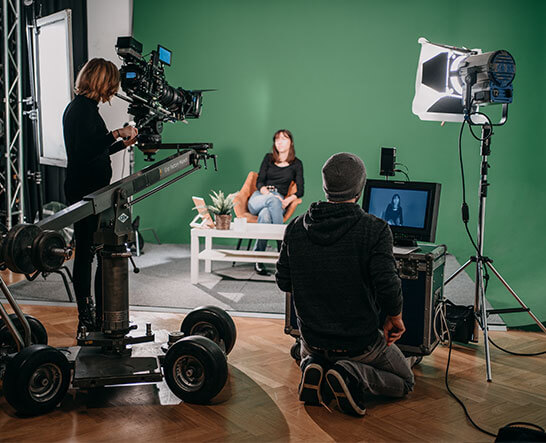 Starte mit einem kostenlosen Beratungsgespräch, inkl. Campus-Tour. Überzeug dich selbst von unseren Filmstudios, Kamera- und Lichtequipment sowie Postproduktions-Suiten und kläre alle Fragen direkt mit unserer Bildungsberatung.