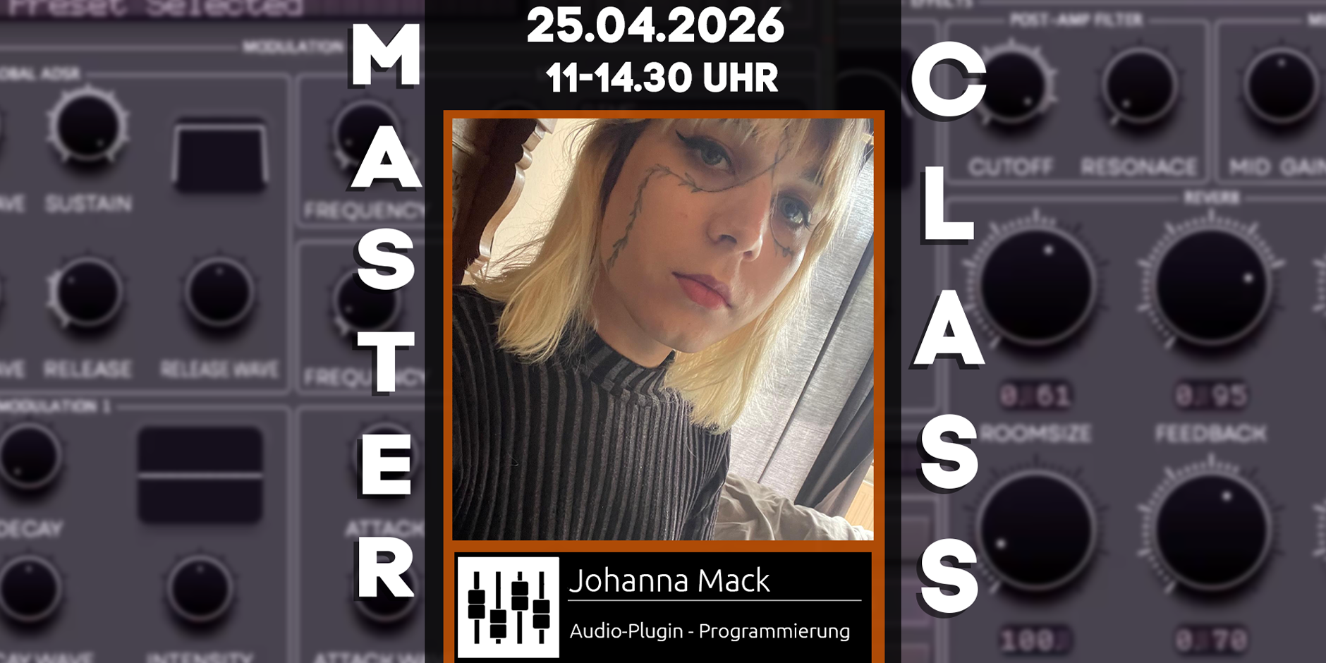 Die Masterclass beleuchtet genau diese Fragen und ermöglicht den Teilnehmer·innen die Erstellung eines eigenen Plugins im Rahmen dieses Kurses. Programmierkenntnisse sind dazu nicht erforderlich. Verschiedene Konzepte digitaler Audio-Signal-Bearbeitung werden anhand der gemeinsamen Programmierung eines Softclippers erklärt und Programmiergrundlagen erläutert. Am Ende der Masterclass erhält jede·r Teilnehmer·in ein selbstgeschriebenes Saturation-Plugin.