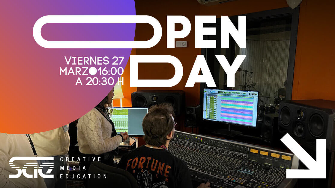 El próximo 27 de marzo SAE Barcelona te invita a una nueva edición de su Open Day, una jornada de puertas abiertas pensada para todas aquellas personas interesadas en conocer de primera mano el campus, las instalaciones y el enfoque práctico con el que se forman los futuros profesionales de las industrias creativas.