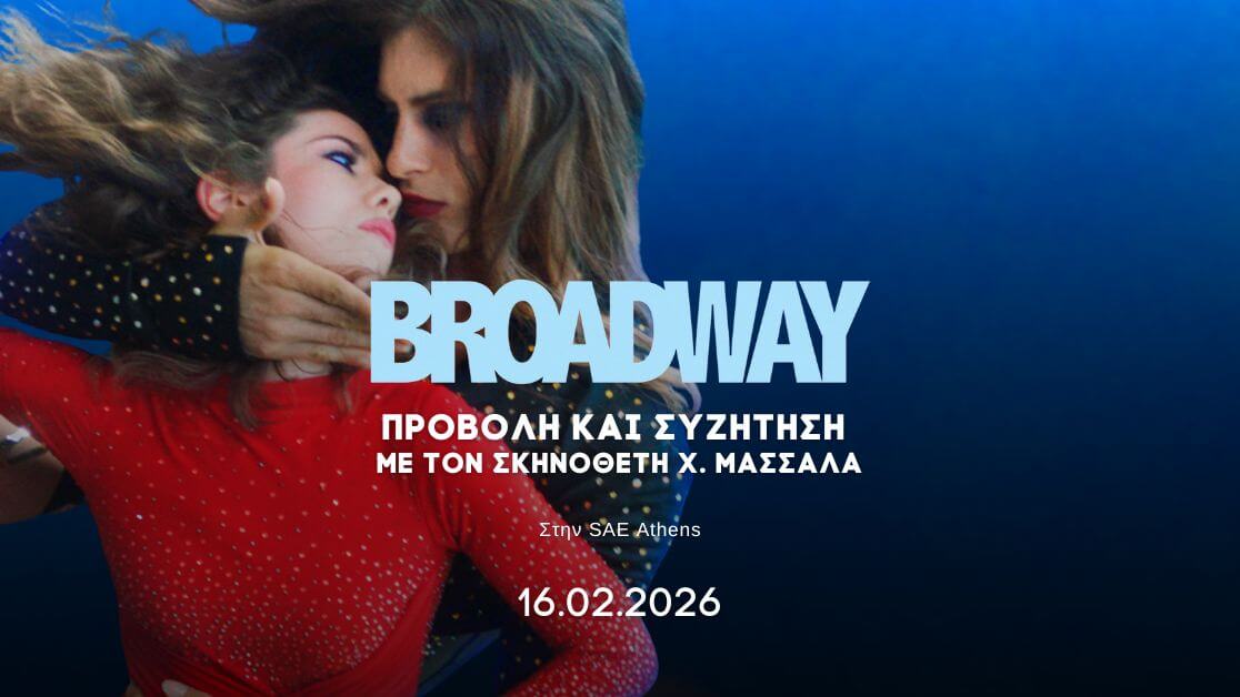 Η SAE Athens και το τμήμα BA/BSc Film Production φιλοξενούν τον βραβευμένο σκηνοθέτη Χρήστο Μασσαλά, σε μια ειδική προβολή της ταινίας του BROADWAY (2022), συνοδευόμενη από ανοιχτή συζήτηση με το κοινό.