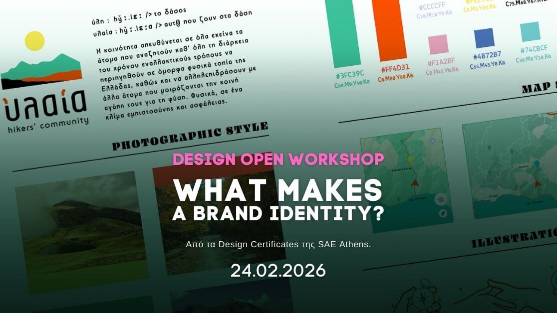 Σε αυτό το ανοιχτό workshop με την Διευθύντρια του Design τμήματος Λένα Λεκκου και την εισηγήτρια Μαριάμ Κιουρή, θα εξερευνήσουμε τι είναι το brand identity και ποια είναι τα πρώτα βήματα για τον σχεδιασμό μιας ολοκληρωμένης οπτικής ταυτότητας. Θα συζητήσουμε τη διαδικασία, θα δουλέψουμε πάνω σε ένα υποθετικό brief και θα δημιουργήσουμε μαζί moodboards ως αφετηρία για συζήτηση και σχεδιασμό.