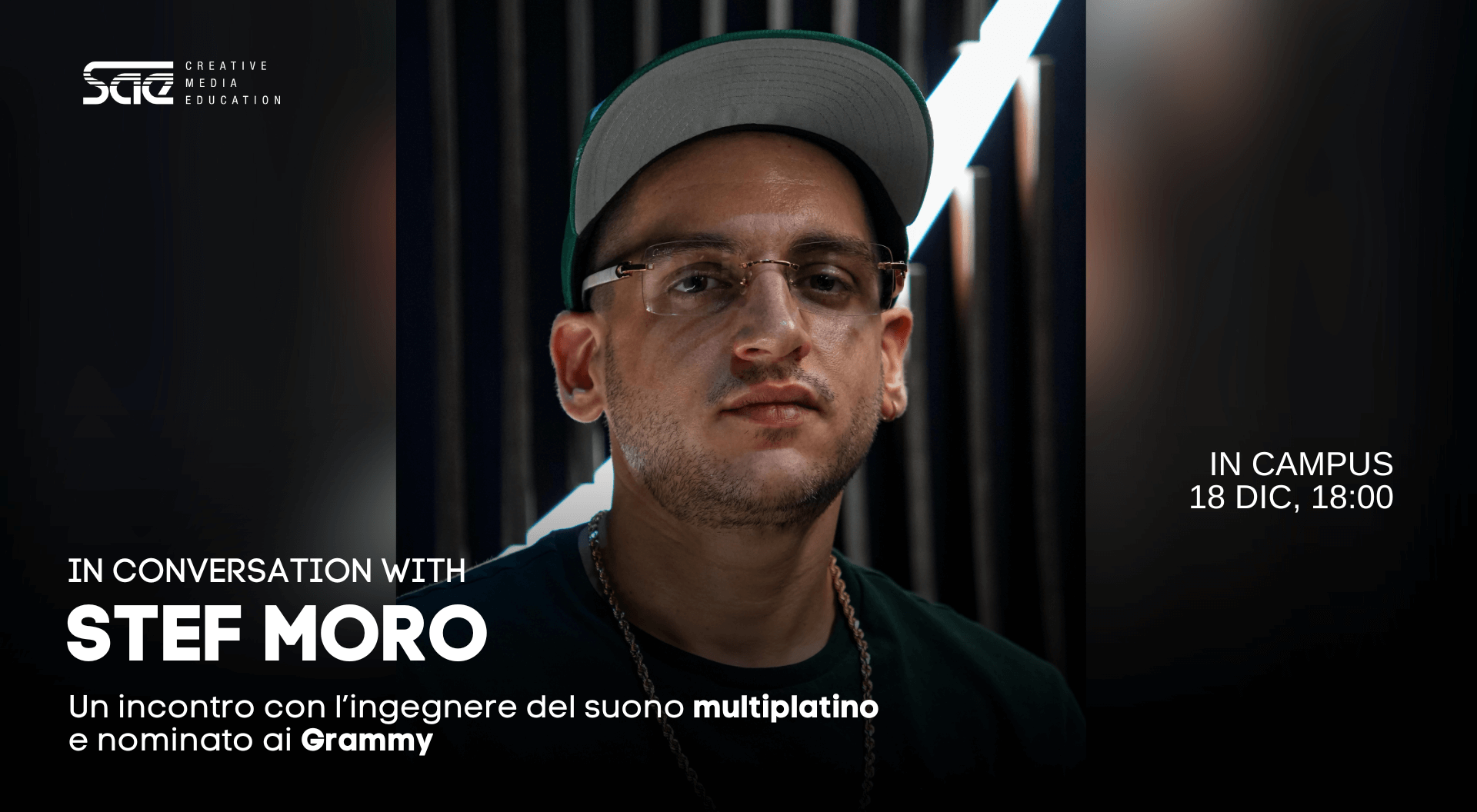 Giovedì 18 dicembre alle ore 18:00 SAE Institute ospita in campus un incontro con Stef Moro, ingegnere del suono multiplatino e nominato ai Grammy che ha lavorato con artisti come, tra i tanti, Kanye West, Travis Scott, Snoop Dogg, Ty Dolla $ign e Wiz Khalifa.